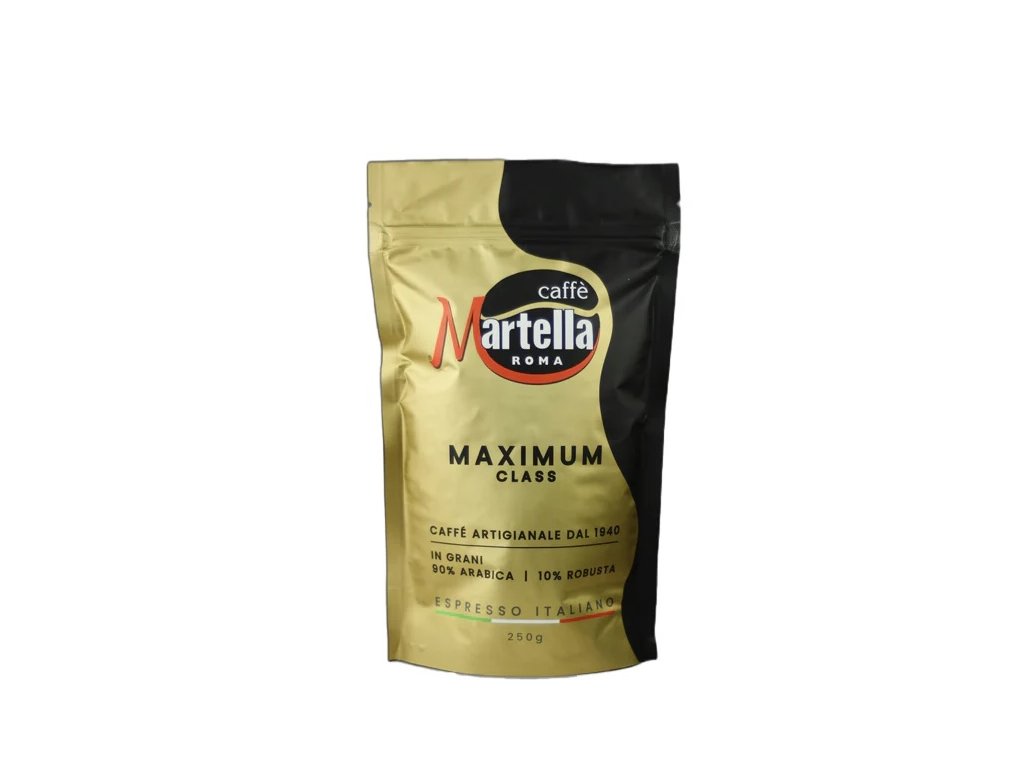 Caffè Martella Maximum Class ponúka jedinečne dlhotrvajúcu čokoládovú chuť, dokonale vyváženú arómu a hustú lieskovoorieškovú krému. Jemné praženie kávy Caffè Martella pri stredných teplotách a dlhý čas praženia tvorí základ absolútne prémiovej kvality. Vyrobená z certifikovanej čistej energie a medzinárodne opakovane uznávaná ako najlepšia dovážaná káva. Každý barista by mal aspoň raz zažiť Caffè Martella Maximum Class vo svojom mlynčeku na kávu.